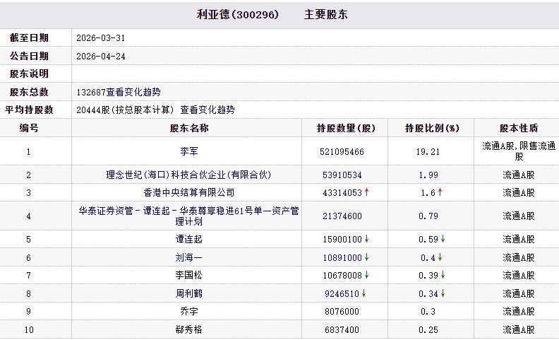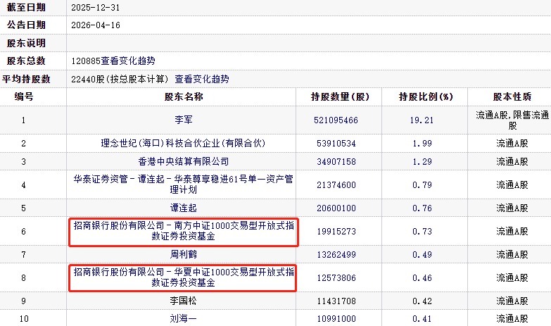 对比发现,今年首季,招商银行股份有限公司-南方中证1000交易型开放式指数证券投资基金、招商银行股份有限公司-华夏中证1000交易型开放式指数证券投资基金退出利亚德前十股东行列。